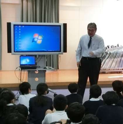6年生に対する非行防止教室ということで、福島警察署の方に来ていただき、お話を聞きました。