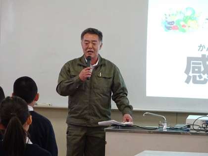5年生の食育授業です。北海道からジャガイモ生産者の方をお招きし、ジャガイモについていろいろ教えていただきました。普段口にしているジャガイモにも、たくさんの種類や育て方の苦労があることなどを知りました。「JA新はこだて馬鈴しょ協議会」会長様のお話も聞きました。