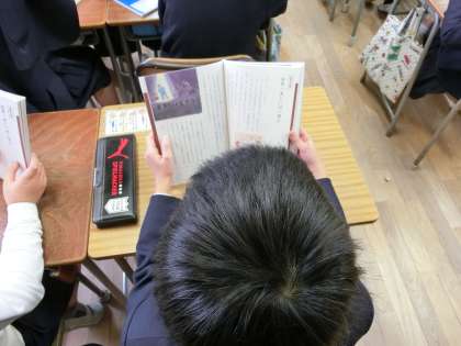 戦争によってこの村がどうなったのか、今日はその続編のお話です。デジタル教科書の朗読を聞きながら、みんな真剣に教科書を読んでいました。