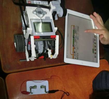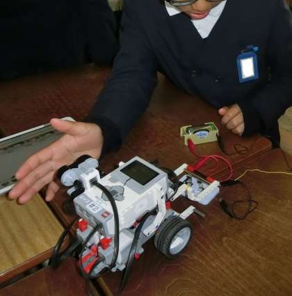 6年生はロボットとセンサーを活用して、日常に役立つプログラムを考えました。