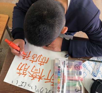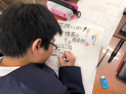 6年生は、総合的な学習の時間に未来の吉野の町について考えています。今の自分たちが町に対してできることは何だろうと考えて取り組んでいます。卒業まであと少しですが、何かを残したいと思っています。