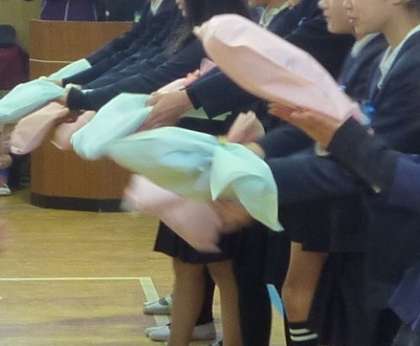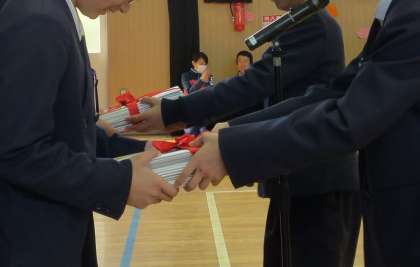 6年生にプレゼントをわたしたり、歌を歌ったりしました。