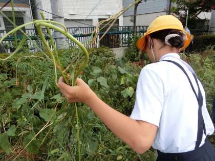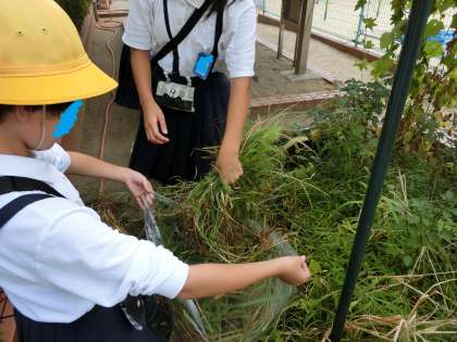 雑草の中から、1学期に植えたなすびが育っていたのを発見しました。