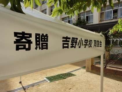 そこで、地域の方にその気持ちをお話したところ、みんなでお金を合わせて「吉野小学校」のテントを買いましょう、ということになりました。