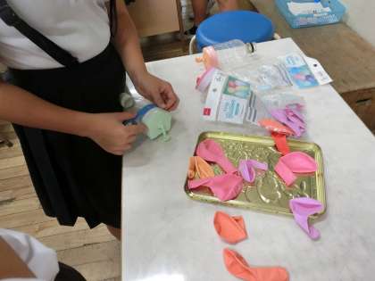 「ペットボトル空気砲」を作りました。発射された空気は、目には見えないけれどドーナツ状の渦の輪が前に進みます。
