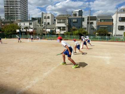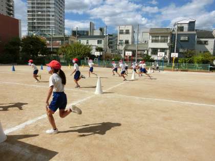 今日は爽やかな秋空のもと運動場でバトンパス練習をしました。
