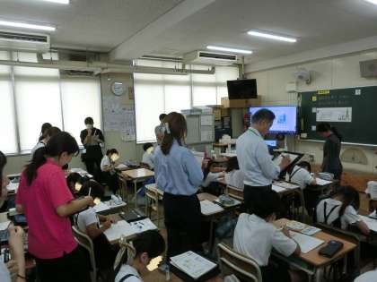 今日の5限目は、4年3組で算数の研究授業がありました。
