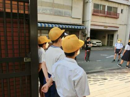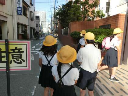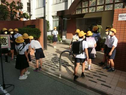 朝の登校時間に、児童たちに