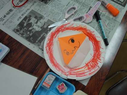 今日のひまわりタイムは秋を感じる栗を作りました。折り紙で栗を折り、皿紙を刻んでいがを表現しました。栗に顔やデザインを描き、思い思いの栗ができました。