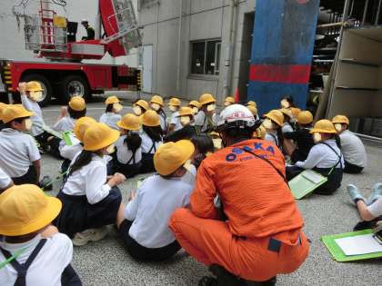 消防署で働く人たちに話を聞き、消防署の役割について学びます。