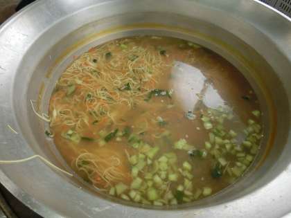 10月21日の給食は「黒糖パン、牛乳、タンタンめん、キャベツの甘酢づけ、おさつチップス」でした。給食の汁めんはこの献立だけで、年1回出ます。めんと野菜だけの汁めんに、別に作った肉みそをかけて食べます。とてもおいしく大好評でした。