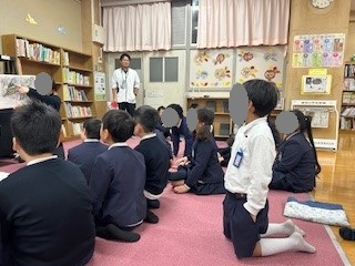 今日のひまわりタイムは、図書室で読み聞かせでした。「どろんこハリー」「もこもこもこ」「きょうのごはん」の絵本の中で、「きょうのごはん」は、挿絵がとてもおいしそうで,みんな目を輝かせて聞いていました。せんべいを焼く手遊び歌では、「激辛ソースせんべい‼」「サラダせんべい‼」等、食べたい味をリクエストしていました。