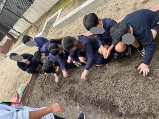次に大根の種を植えに行きました。ひまわりのみんな、大根の成長を祈って植えていました。