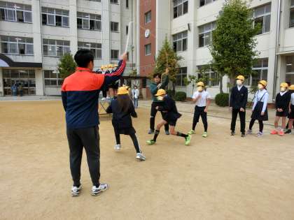 まず初めに、運動委員がみんなの前でお手本を見せてくれました。