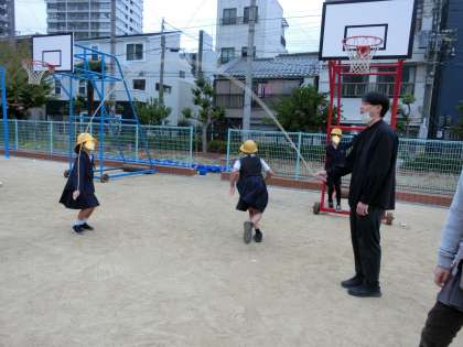 その後は、クラスごとに分かれてなわとびチャレンジをしました。