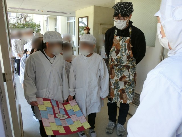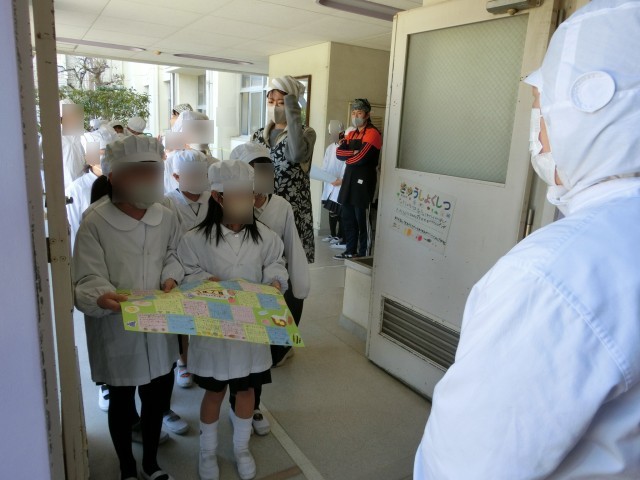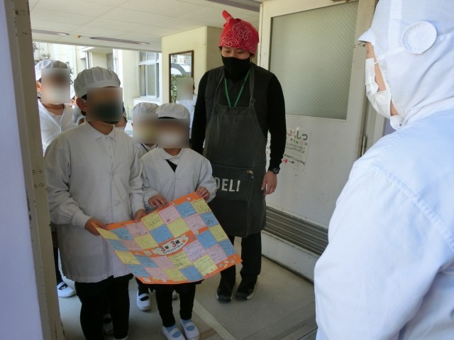 給食調理員さんに、感謝の気持ちを伝えるメッセージを渡しました。