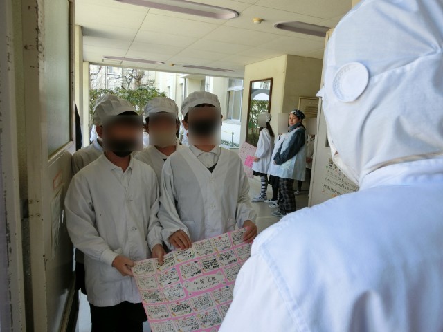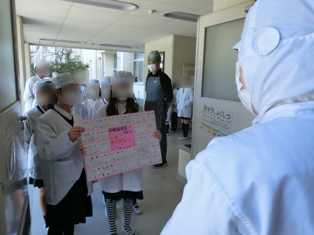給食調理員さんに、感謝の気持ちを伝えるメッセージを渡しました。
