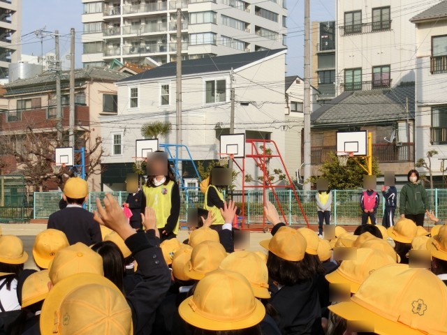 集会委員が「逃走中」という鬼ごっこのような遊びをしてくれました。
