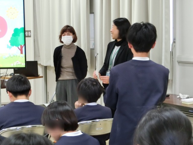 全校児童への啓発活動を楽しく進めている一年間の取り組みの様子を発表しました。