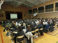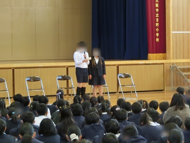 今日は、全校朝会が講堂でありました。