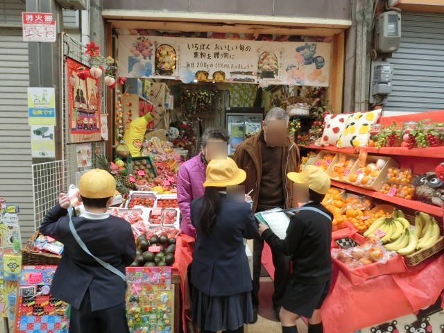 新橋筋商店街の人たちは、児童たちの質問に丁寧に優しく答えてくれました。