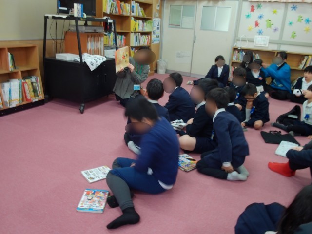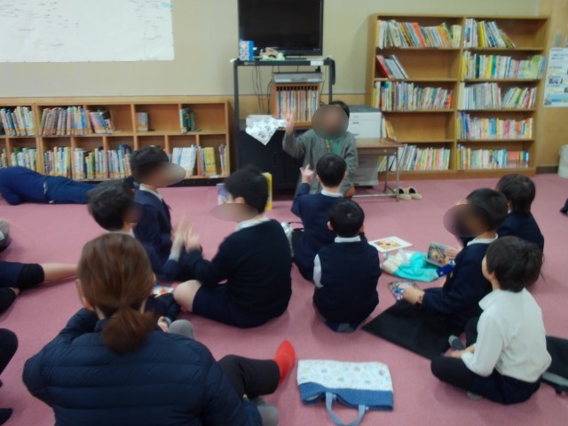 今日のひまわりタイムは図書室で読み聞かせでした。冬に関係する本を2冊読み、雪がたくさん描かれていました。大阪にも雪が降るといいですね!手遊びうたをした後、「ぽんちんぱん」の絵本を読みました。「ちぎちぎぱっぱでぽんちんぱん」のフレーズをみんなで一緒に手の動きもつけて楽しんでいました。