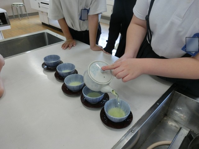 5年生は、初めての家庭科室での活動でした。コンロでお湯を沸かして、おいしいお茶をいれました。初めての食器洗いもしっかりすることができました。