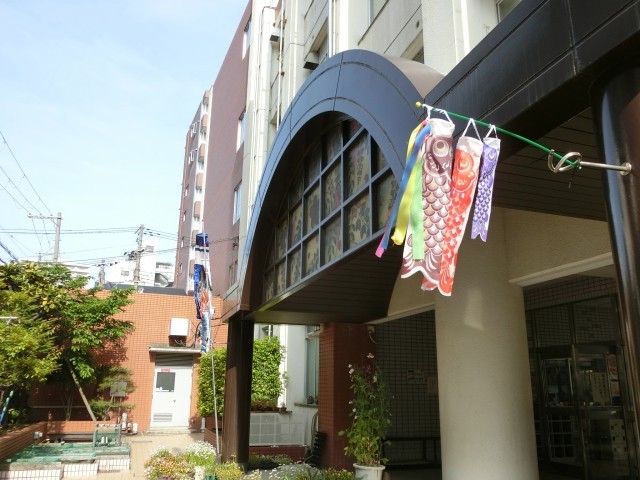 今年は玄関にもこいのぼりを出していただきました。