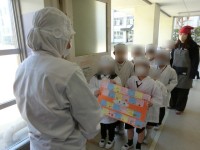 給食調理員さんに、感謝の気持ちを伝えるメッセージを渡しました。