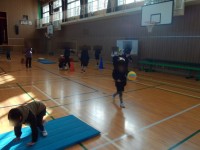 今日のひまわりタイムは講堂でサーキットトレーニングを行いました。ケンケンパをした...