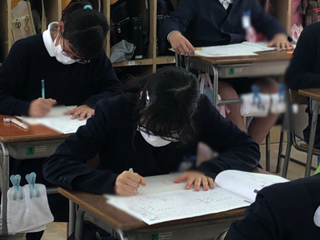 5年生・6年生が漢字検定に挑戦しています。すごく集中しています。