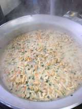 今日の献立は、「豚肉と野菜のケチャップ煮、カリフラワーのピクルス、桃のクラフティ...