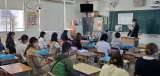 今日の4時間目、3年生が英語の勉強をしている様子です。今日はアルファベットの学...