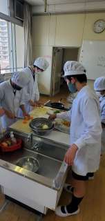 今日の3時間目、6年生が家庭科室で調理実習をしている様子です。 若野先生にも...