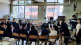 修了式後の教室の様子です。たくさんのクラスがお楽しみ会をしており、大きな笑い声...