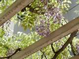 藤棚の野田藤が咲き始めました。 正面玄関前は春色でいっぱいです。