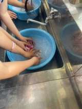 家庭科の学習で洗濯の実習を行いました。水着の水洗いなど家でもできることをやるよう...