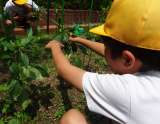 先日、出前授業で苗を植えたピーマンがたくさん実ってきました。子どもたちは、はさみ...