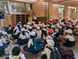 ?5年生が林間学習に向かいます。 出発式を終え、バスに向かいます。 iPho...