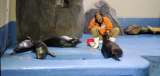 上はバイカルアザラシの餌やり、下はタッチプールです。なかなかすばしっこくて触れ...