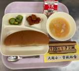 まぐろのオーロラ煮、スープ、きゅうりのサラダ、こくとうパン、牛乳です。