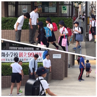本日より『あいさつ週間』がスタートしました。大阪府立西野田工科高等学校の生徒の皆さんと児童会と交流して、児童登校時に、爽やかな風を感じる『おはようございます』のあいさつを交わしています。