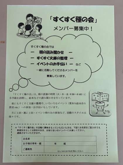 今年度もすくすく種の会のメンバーを募集しております。ご参加していただける方は、ご連絡ください。よろしくお願いします。