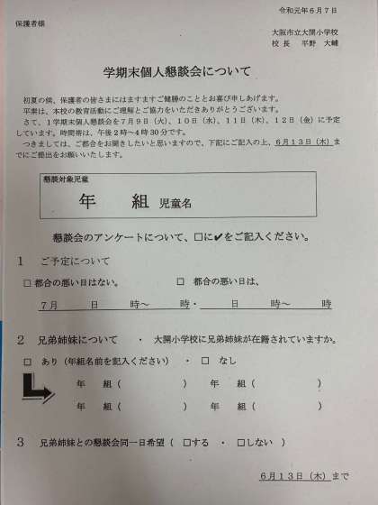 1学期学期末懇談会について!