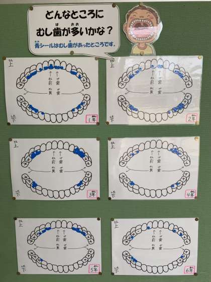 歯の絵は、歯科検診で見つかった虫歯の箇所と数を表したものです。