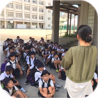 四年生は社会見学に大阪市立科学館へ出発します。先生から社会見学の注意事項の説明がありました。