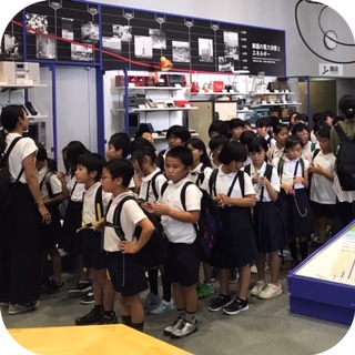 大阪市立科学館の見学を終了して整列しています。 学校に向かって出発です。