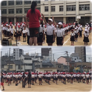 全校児童が集まり運動会の練習を行いました。選手宣誓や校歌の練習などを行いました。
