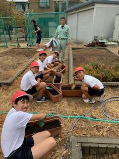 環境委員会の子どもたちが、福島区役所からいただいた花の種を使って、栽培活動を行いました。本校の管理作業員さんに植え方を教わりながら、小さな種をプランターに一粒ずつうえていきました。きれいな花が咲いて、花いっぱいのおおひらきになればいいなぁと思いました。
