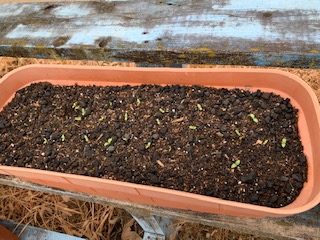 子どもたちの植えたプランターからたくさんの芽がでてきました!